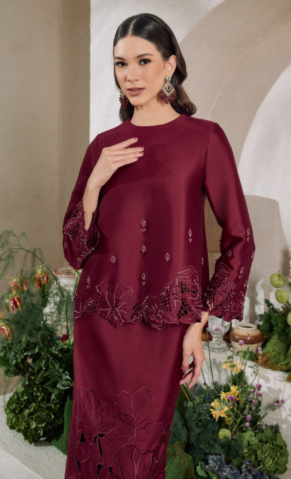 • Modern Kurung cutting with embroidery and beadwork detailings at neck area, end sleeve & hem